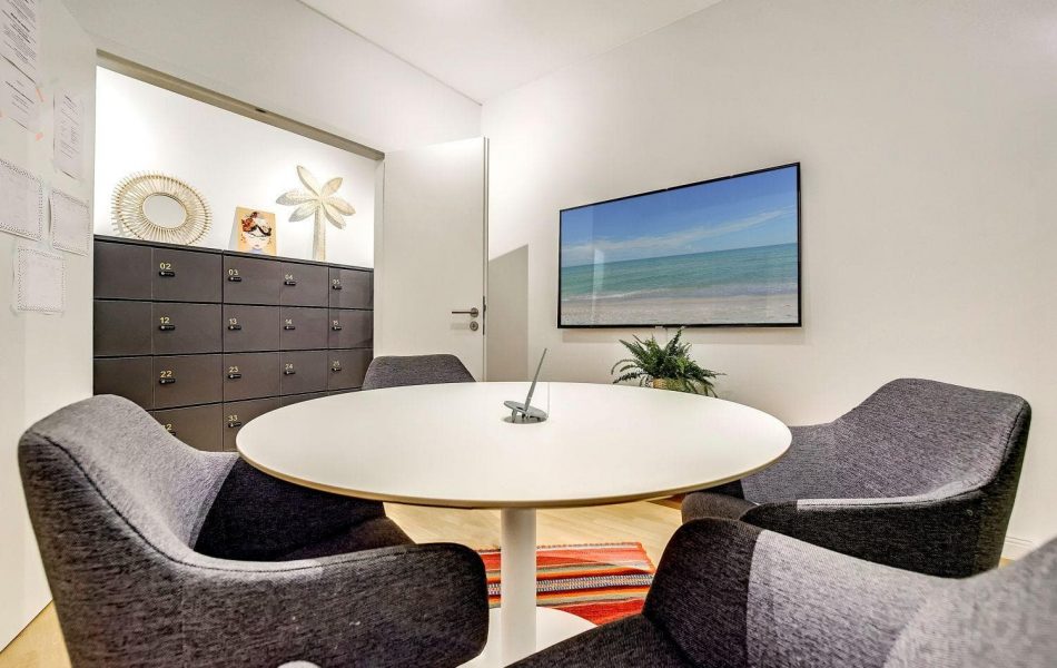 Unser Bürobereich sieht nicht nur gut aus, sondern es steckt auch eine Menge drin: Jeder Arbeitsplatz kann in Vollzeit 24/7 genutzt werden, inklusive W-LAN, Strom und einem abschließbaren Schrankfach. In produktiver Atmosphäre können Eltern ihre Projekte umsetzen, Kontakte knüpfen und sich mit anderen Eltern austauschen. Zum Telefonieren sind abgetrennte Bereiche eingerichtet.