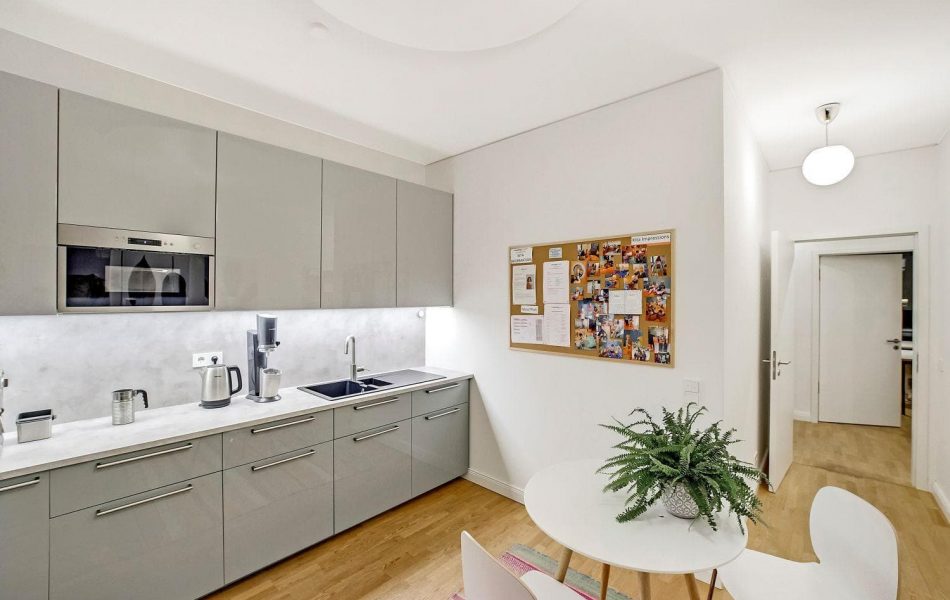In der Teeküche gibt es einen Kühlschrank, in dem Snacks und Nervennahrung frisch gehalten werden. Und natürlich steht frisch gemahlenen Kaffee und eine große Teeauswahl zur Verfügung.
