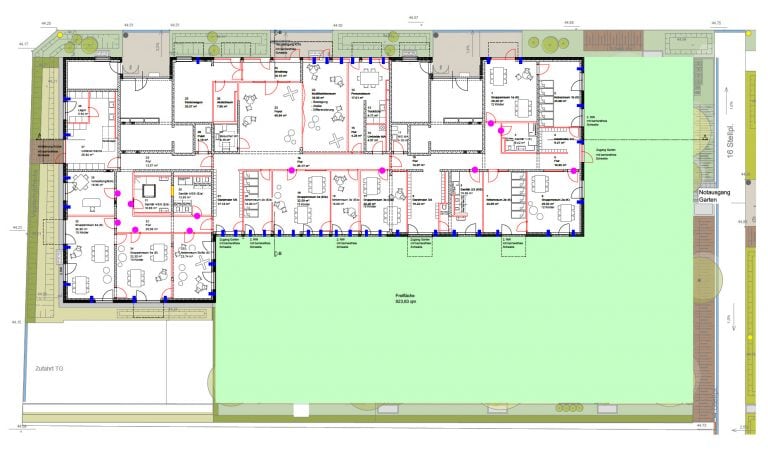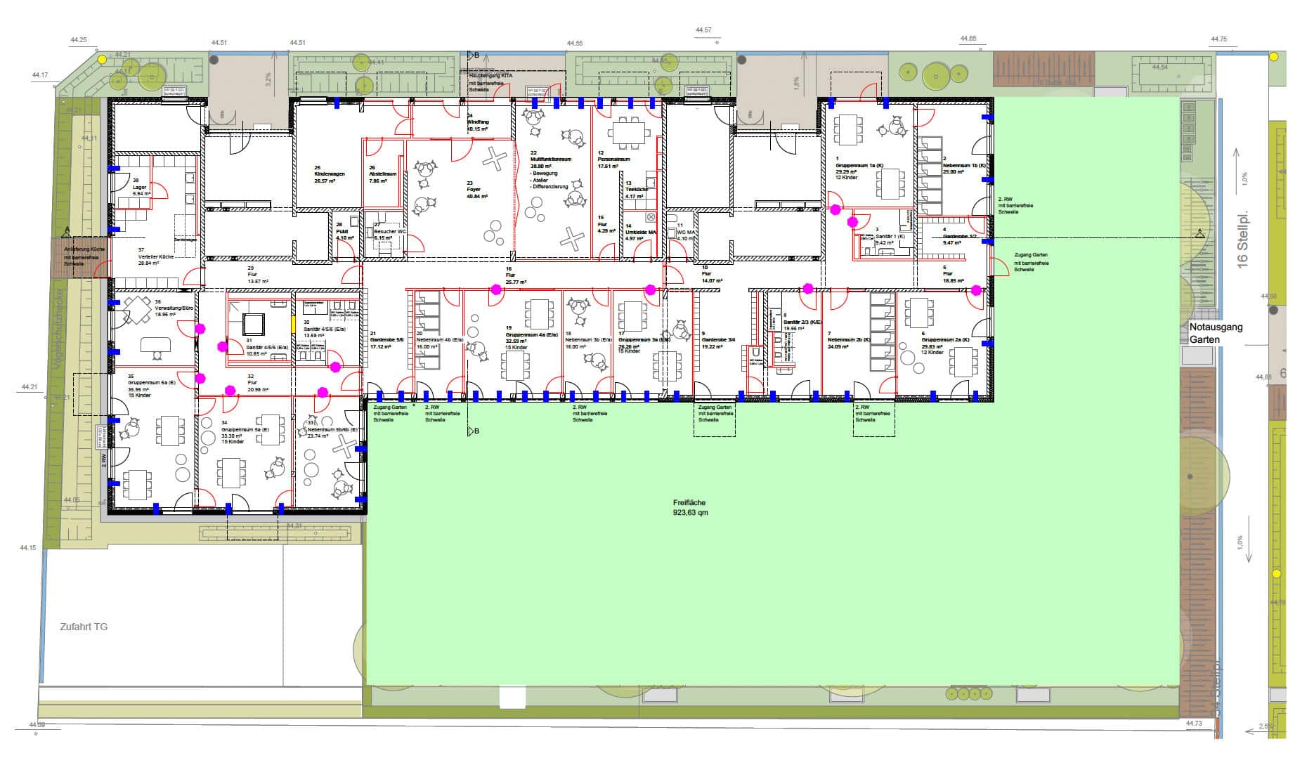 Helle Gruppenräume, ein großer Multifunktionsraum und ein über 900 m² großes Außengelände bilden die Basis für Bewegung, Spielen und Lernen. Das Gelände ist geschützt, vielfältig gestaltet und erlaubt den Kindern viel sichere Zeit im Freien.
